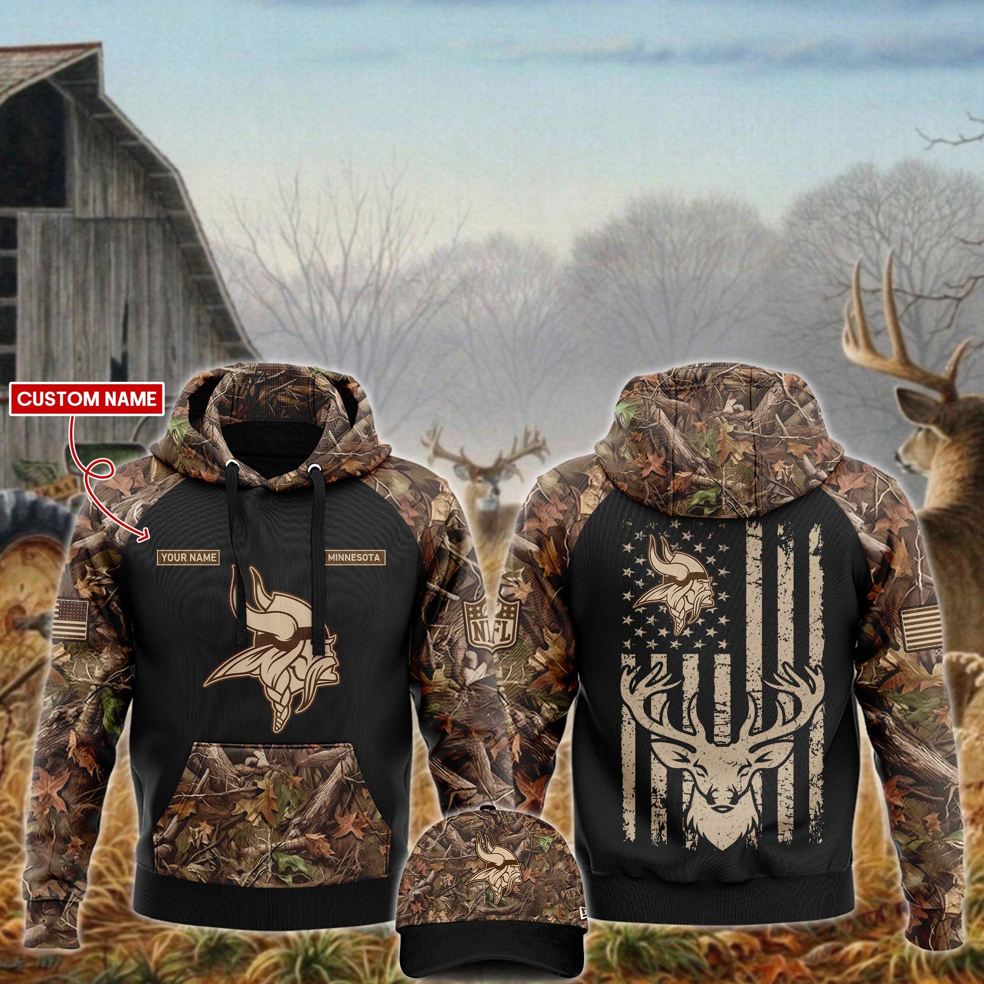 Premium Minnesota Vikings Merch - Minnesota Vikings Football x Hunting Limited Edition Black Hoodie 2025 - Gear Up For Game Day